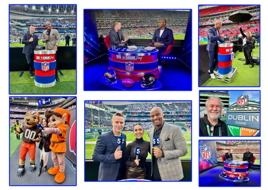 It was splendid to be reunited with presenters Osi Umenyiora and Nat Coombs once again and to meet pitch-side reporter Ellie Evelyn, whilst working on Hungry Bear Media’s Channel Five coverage of the NFL International Games, from Croke Park, Tottenham Hotspur and Wembley Stadiums.